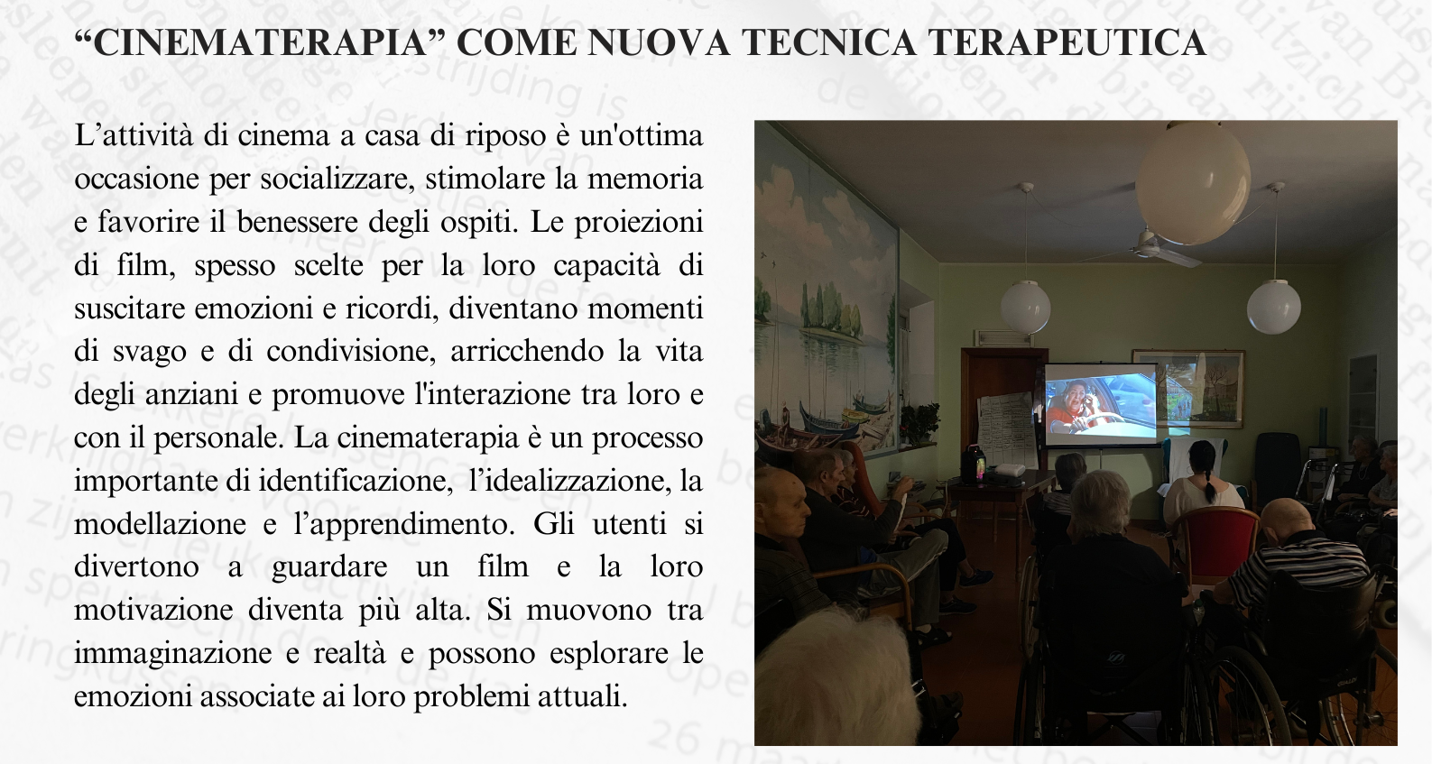 Al Felice Carri di Gualtieri si è svolta l'attività di cinematerapia che è non solo è un ottimo modo per far divertire gli anziani attraverso diverse proiezioni di film ma soprattutto sono in grado di suscitare emozioni e ricordi.